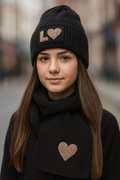 Komplet zimowy dla dziewczynki: czapka i szalik, Elwira, czarny, 52-56 cm