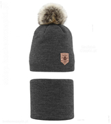 Czapka i komin dla dziewczynki, komplet na zimę, Wilma, szary, 46-48 cm