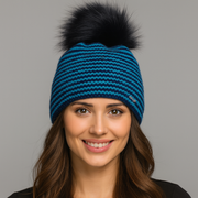 Czapka zimowa damska z pomponem Denisa, granat+turkus, 55-59 cm