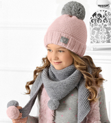 Czapka i chustka dla dziewczynki, zimowa, z pomponem, Fanny, rozm. 52-55 cm
