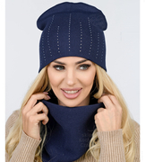 Czapka i komin damski, komplet jesienny, Fabrina, granatowy, 55-60 cm