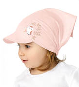 ( ilość produktów: 7077 )Chustka z daszkiem na gumce, dla dziewczynki, Coruja, pudrowy róż, 46-50 cm