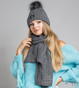 Komplet zimowy damski, czapka i szalik, Melilla, ciemny szary, 55-57 cm