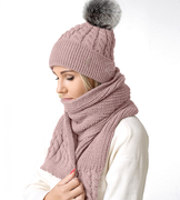 Czapka i szalik damski, komplet zimowy, z polarem, Felize, róż brudny (2), 56-60 cm