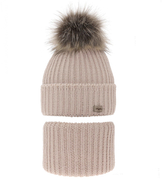 Zimowa czapka i komin dla dziewczynki, Liwow, beżowy, 52-55 cm