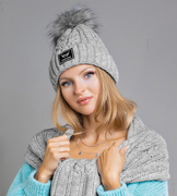 ( ilość produktów: 7105 )Komplet zimowy damski, czapka i szalik, Melilla, szary, 55-57 cm