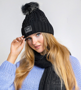 Komplet zimowy damski, czapka i szalik, Melilla, czarny, 55-57 cm