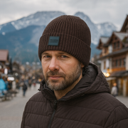 Czapka zimowa męska, z wełną merino 34%, Nebet, brązowa, 56-60 cm