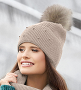 Elegancka czapka damska zimowa, wełniana, Elinja, beżowa, 56-60 cm