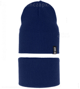 Ciepły komplet dwustronna czapka smerf i komin zima Noriaki rozm. 46-50 cm