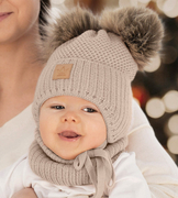 Komplet zimowy, czapka i szalik dla dziewczynki, Bifien, beżowy, 50-53 cm