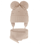 Komplet zimowy, czapka i komin dla dziewczynki, beżowy, Nimsi, 44-46 cm