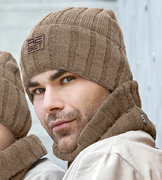 Komplet zimowy męski, czapka i komin, Iglesias, beżowy, 57-60 cm