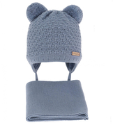 Zimowa czapka i szalik dla noworodka, niebieski, Nafkin, 42-44 cm