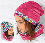 Komplet: czapka i komin dla dziewczynki, dwustronny, jesień/zima, Owieczki, rozm. 46-49 cm, różowy