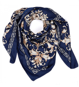 Chusta damska, apaszka satynowa, chustka na głowę, granat + beż , 90x90 cm