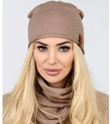 Czapka i komin damski, komplet wiosenny-jesienny, Mirandi, mokka, 55-57 cm