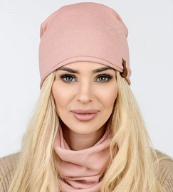 Czapka i komin damski, komplet wiosenny-jesienny, Mirandi, róż pudrowy, 55-57 cm