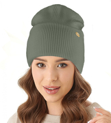 Czapka i komin damski, komplet wiosenny-jesienny, zielony oliwka, Clara, 55-58 cm