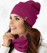 Czapka i komin damski, komplet Catrine, wiosenny-jesienny, róż ciemny, 55-56 cm