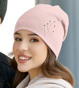 Czapka damska zimowa, elegancka, Dessa, różowa, 54-56 cm