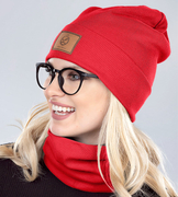 Czapka i komin damski, komplet jesienny/wiosenny, czerwony, Livnea, 55-57 cm