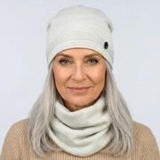 Komplet czapka i komin damski, zimowy/jesienny, Benita V.1, śmietankowy, 55-57 cm