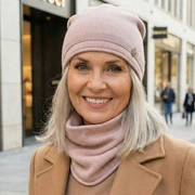 Czapka i komin damski, komplet jesienny, Fabrina, róż brudny, 55-60 cm