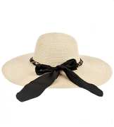 Kapelusz damski na lato, z dużym rondem, ecru naturalny, 55-56 cm