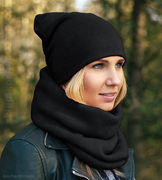 Czapka damska i komin z dzianiny, komplet damski Benita II, czarny, 55-57 cm