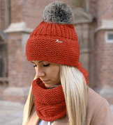 Czapka zimowa i komin, komplet damski, Mauricia, pomarańczowy (3), 55-57 cm