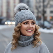 Zimowa czapka damska z pomponem, komplet z kominem, Mauricia rozm. 55-57 cm