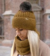 Czapka i komin damska, komplet zimowy, brązowy (5), Benita, 55-57