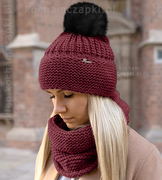Zimowa czapka damska z pomponem, komplet z kominem, Mauricia rozm. 55-57 cm