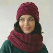 Czapka i komin do obwijania, zimowy damski komplet, Irydia, bordowy, 56-60 cm