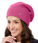 Czapka damska jesienna/wiosenna, szeroki prążek, Vosjana, malinowy, 56-60 cm