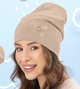 Czapka damska wiosenna/jesienna, bawełniana, beżowa, Aonang, 54-56 cm