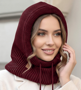 Komin z kapturem damski, kominiarka/kaptur zimowy wełniany, Ruanna, bordowy, 55-60 cm