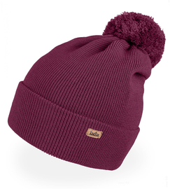 Czapka merino z pomponem, Mjaia, bordowa, 54-58 cm