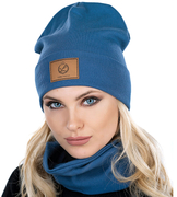 Czapka i komin damski, jesienny/wiosenny, niebieski, Livnea, 55-57 cm