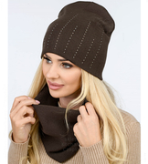Czapka i komin damski, komplet jesienny, Fabrina, czekoladowy, 55-60 cm
