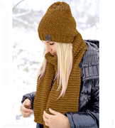 Zimowa czapka i duży komplet czapka i szal XXL Khyati, brązowy karmel, 55-57 cm