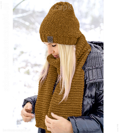 Czapka i szalik na zimę, Gisele, karmel ciemny, 55-57 cm
