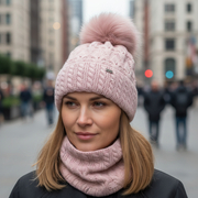 Zimowa czapka damska i komin, elegancki komplet Natalie, róż nude, 55-57 cm