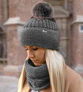 Czapka z pomponem i komin damski zimowy Mauricia grafitowy rozm. 56-60 cm