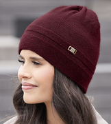 Elegancka czapka damska zimowa, wełniana, Jenova, bordowa, 55-59 cm