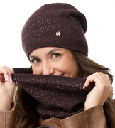 Czapka i komin damski, komplet na zimę, wiskozowy, Jokasta, brązowy, 55-60 cm