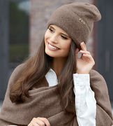 Czapka jesienna, damska, wełna merino z kaszmirem, Nalieta, jasny beżowy, 54-57 cm