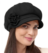Kaszkiet damski zimowy, Granja, czarny, 56-58 cm