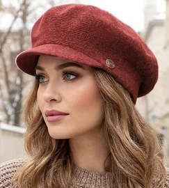 Damski kaszkiet na zimę, czapka z daszkiem Revna, czerwono ceglany melanż, 56-59 cm